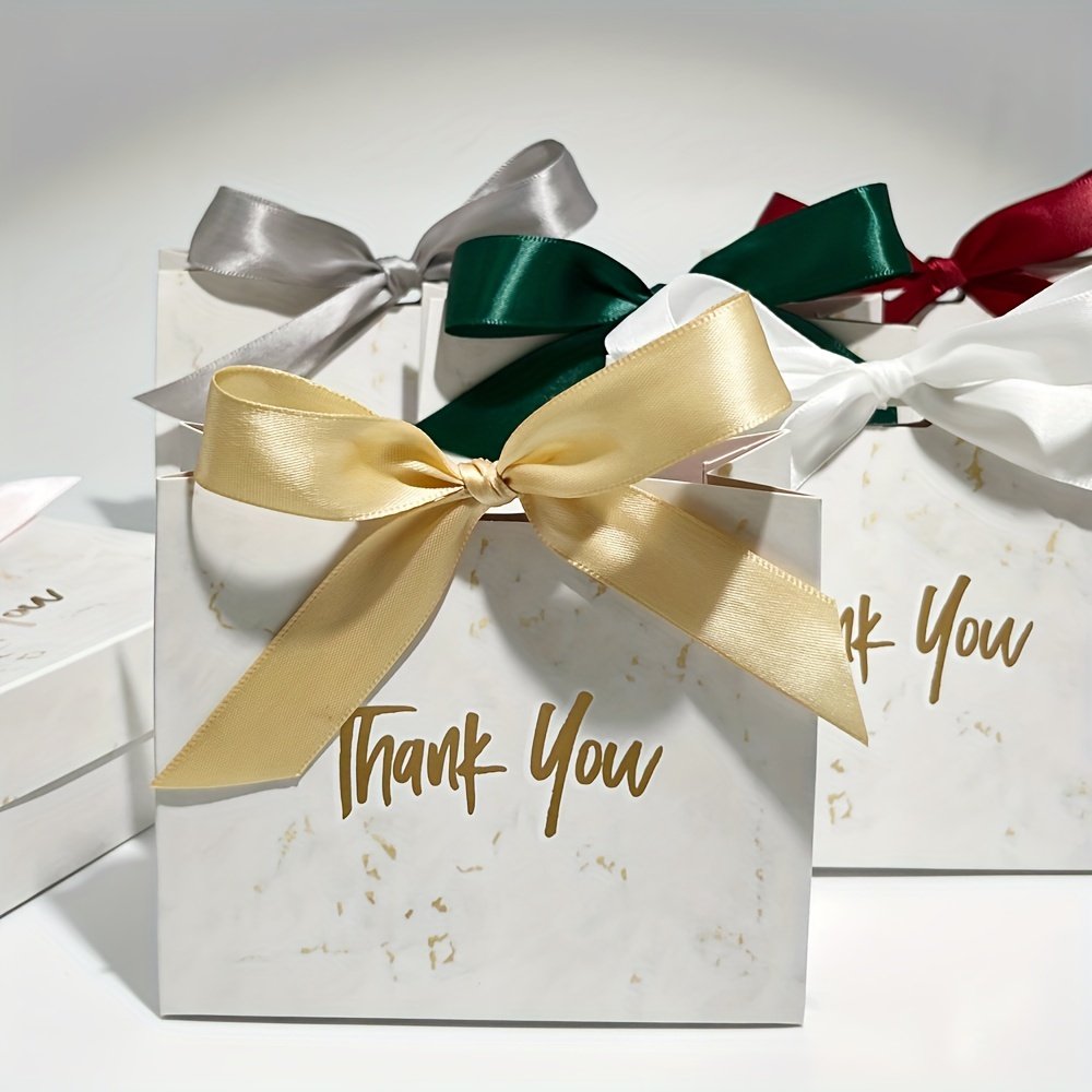 25pcs Party Favor Candy Boxes Featuring a Marble Design, Mini Gift Bags, And Golden Foil Stamping